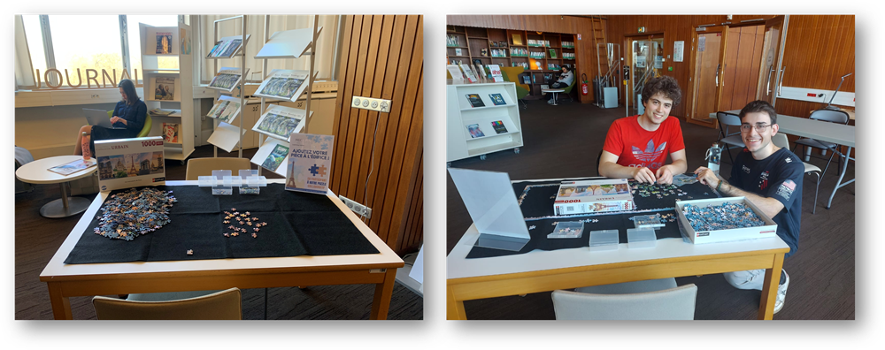 Installé en libre accès 7j/7 et 24h/24 au Learning Center (bâtiment U), ce puzzle de 1 000 pièces se construit progressivement grâce à la participation de chacun. Au fil des contributions, l’image prend forme et devient le fruit d’un effort collectif.